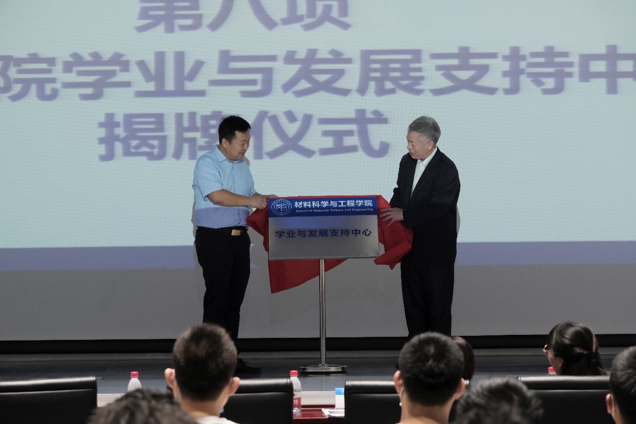 党委书记马朝利和校友代表刘中生共同为材料学院学业与发展支持中心揭牌。学业与发展支持中心的成立旨在为学生的学习方法养成和职业生涯规划提供系统化、专业化、精准化的服务,将开展一系列辅导活动以助力学生成长成才。