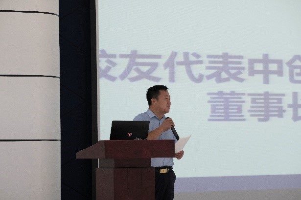 校友代表、中创新材集团有限公司董事长刘中生发言,他分享了自己在北航的求学经历和毕业后的创业故事,通过真实的项目案例剖析了材料专业的重要地位和广阔前景。他勉励全体同学增强专业自信,夯实专业基础,将所学知识学以致用,为我国材料行业的进步贡献青春力量。