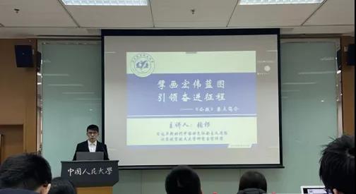 生活阅历广泛,宣讲涵盖面广。讲得了五行八作,讲得了中华文化,讲得了三江四海,讲得了职业规划。历史造就了时势,时势在召唤时代新人,时代新人有自己的使命,把使命同大学生的角色结合起来。在这个思路的基础上,在师姐的支持下,设计了四个备课组,构建了宣讲团的备课体系,深入学习一个理论领域,然后,以此为基点,向最新时事平移、拓展,快速响应,成功举办多次校内专场。