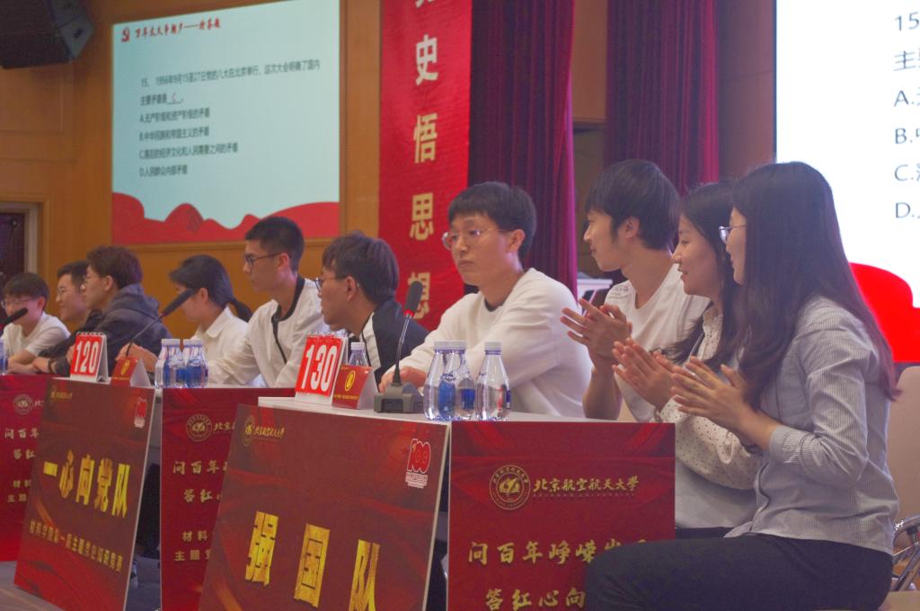 在抢答题环节,各参赛队员将手放在抢答器上方,时刻准备按下抢答器,“3、2、1,开始抢答”,还没等别的参赛队反应过来,1号参赛队就已抢到第一题的答题权,并快速给出了正确答案,取得了领先优势。其余参赛队也不甘示弱,抢答器声音此起彼伏,大家踊跃抢答、你追我赶,展开激烈角逐,充分展现了参赛队员扎实的党史知识基础和奋勇争先的精神风貌,现场气氛异常高涨,观众掌声呼声不断。