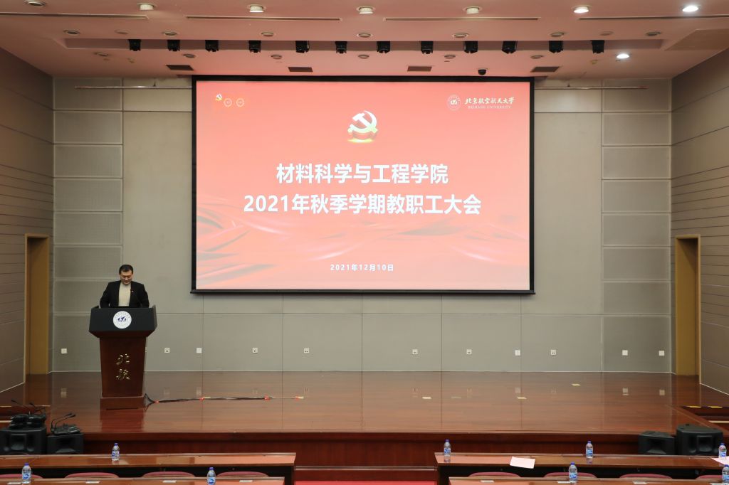 (通讯员/摄影:王小宁)2021年12月10日15:00,材料科学与工程学院2021年秋季学期教职工大会于学院路校区新主楼第一报告厅举行,材料学院全体教职工及专兼职辅导员参加会议,会议由学院党委副书记图们主持。
