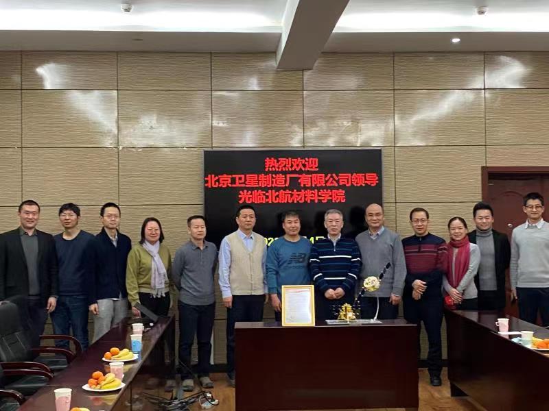 (通讯员:华翠)1月4日下午,中国空间技术研究院北京卫星制造厂有限公司总监杨海涛,公司深空探测领域总师赖小明,机电产品事业部副部长王国欣,技术骨干赵曾和庞勇博士访问了北航材料学院,并为材料学院送来热情洋溢的感谢信和精致的嫦娥五号模型,以感谢材料学院为嫦娥五号月球土壤钻取系统研制宽温域超弹性记忆合金封口器件的重要贡献。材料学院马朝利书记、蒋成保院长、郭洪波副院长、李卫平副院长、赵立东副院长、宫勇吉...